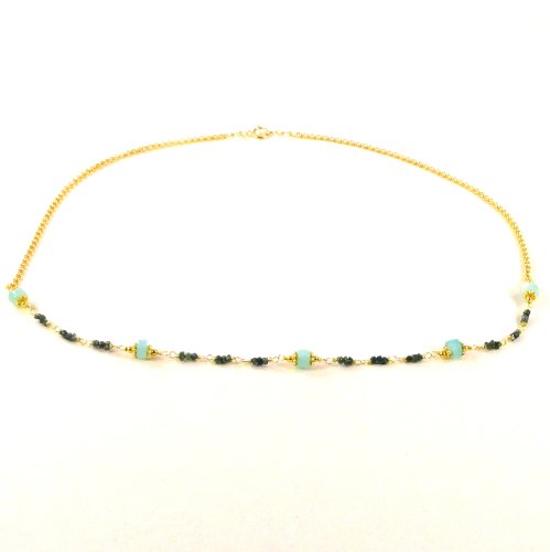 22kt Gold Filled Peruvian Blue Opal and Blue Natural Diamond Chips Necklace, 18 1/2 Inch